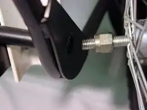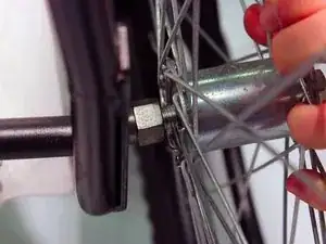 Установите колесо обратно на ось и закрутите болт, используя многофункциональный инструмент или накидной ключ 19 мм и разводной ключ 19 мм.
