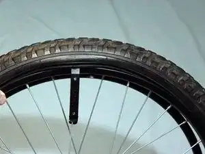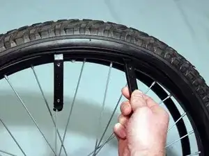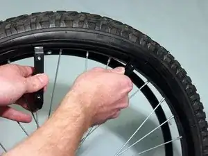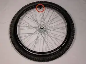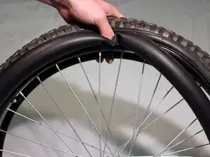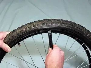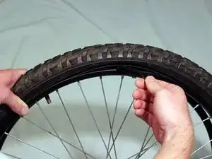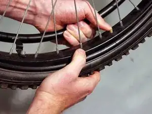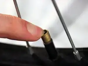 Протолкните ниппель камеры обратно через отверстие в ободе, откуда он выходит.