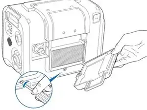 Поместите новый вентиляторный фильтр в отведенный слот.