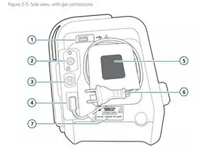 Поверните Hamilton-C1 правой стороной, чтобы были видны газовые соединения.