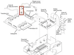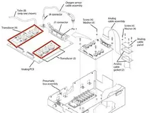 Осторожно снимите трубки с каждого из семи датчиков давления на аналоговой плате. Отметьте соединения трубок для обратной сборки.