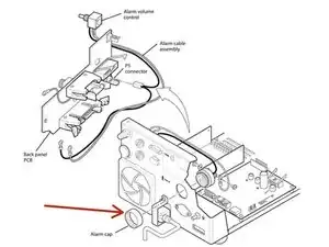 В данном руководстве описываются процессы удаления и замены звукового динамика сигнализации внутри Newport e500. Для выполнения операций потребуется динамометрический ключ и крестовая отвертка. Звуковой динамик расположен на задней панели. Для получения дополнительной информации обратитесь к странице 79 сервисного руководства.