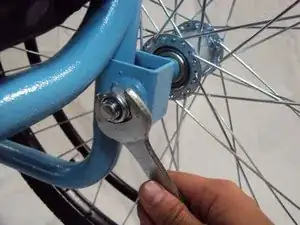 Закрепите гайку на противоположной стороне болта оси и колеса. Затяните гаечным ключом 1/2 дюйма или 19 мм.