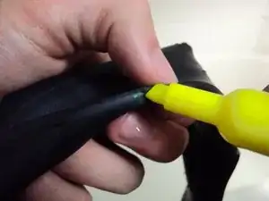 Нанесите тонкий слой резинового клея на отмеченную область.