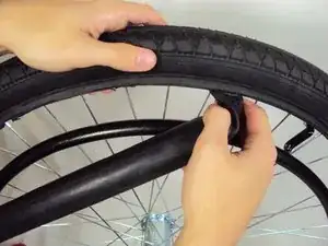 Работая по кругу шины, аккуратно вставьте камеру обратно внутрь шины.