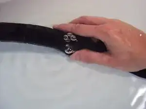 Поместите заплатку на участок с резиновым клеем и крепко прижмите, пока она надежно не приклеится.