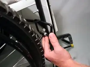Разместите тормоз за передней рамкой прямо над поворотными колёсами.
