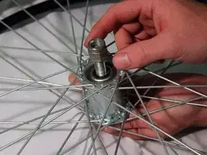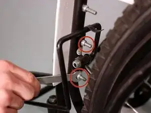 Вставьте болт в ось так, чтобы колесо было прикреплено к боковой части рамы.