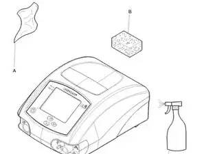 При необходимости слегка распылите дезинфицирующий раствор на прибор, учитывая требования, описанные в предварительных операциях.