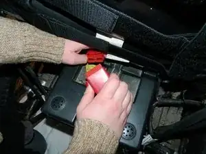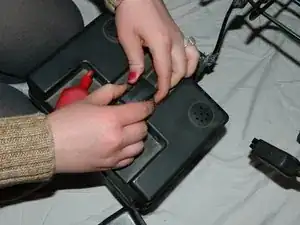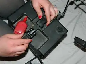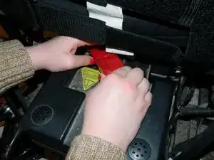 Вытяните первый аккумуляторный блок так, чтобы получить доступ к красному разъёму аккумулятора.