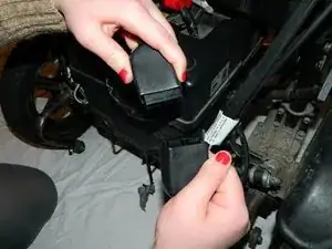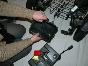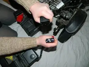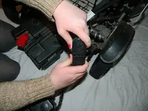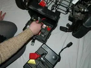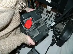Отсоедините чёрные разъёмы аккумулятора, разъединяя их.