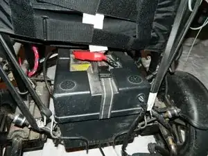 Найдите два аккумулятора под задней частью коляски.
