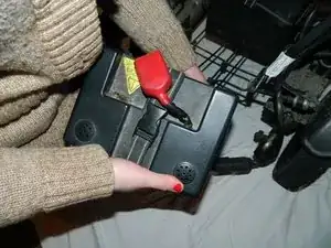 Отсоедините красные разъёмы аккумулятора, разъединяя их.