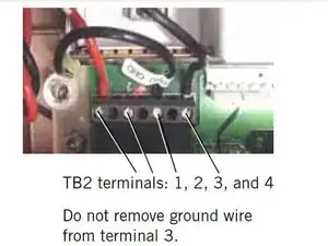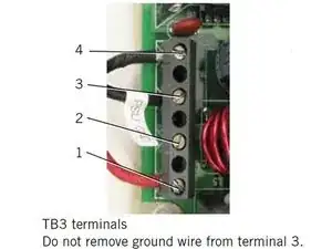 Внимание! Не снимайте чёрный провод заземления с клеммы 3 разъема TB3.