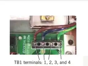 Ослабьте винты на разъеме блока питания TB1 (страница 10-22 Руководства по обслуживанию).