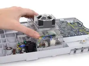 Отключите кабель вентилятора (обозначенный как разъём A в сервисном мануале) от его гнезда в блоке питания.