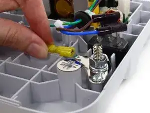 Отсоедините контакты силового шлейфа переменного тока от разъёма IEC с помощью плоскогубцев.