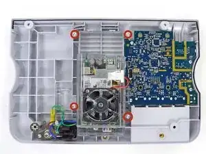 Удалите четыре винта Phillips #2 (обозначенные 14 в сервисном мануале) из задней крышки.