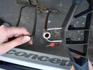 Заведите новую цепь вокруг металлической втулки в конце рядом со стопорами для ног.