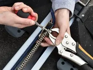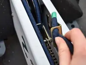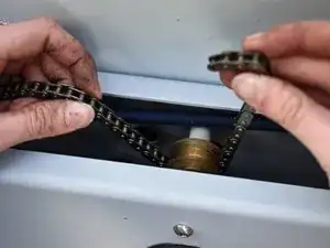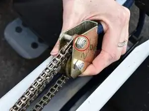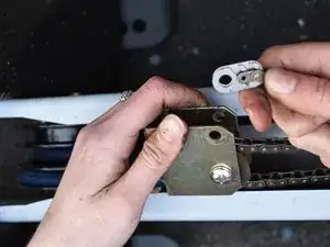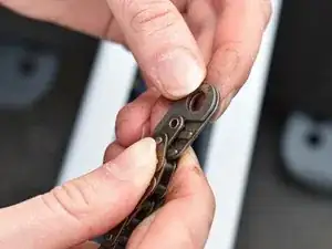 Закрепите два фиксатора со шага 5 на конце цепи и прикрепите их обратно к металлическому блоку.