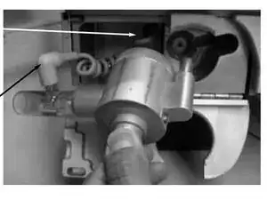 С помощью вращательного движения потяните пластиковый датчик потока FLS2101P вдаль от выхода клапана выдоха EXH2105A.
