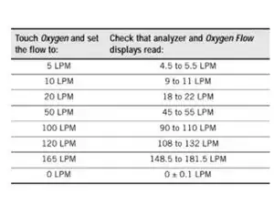 Проверьте, что установленный поток кислорода соответствует измеренному потоку: (Сервисное руководство 8-19/20)