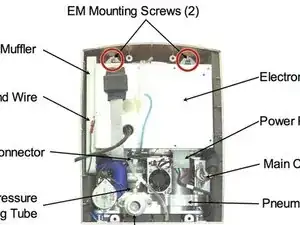 С помощью отвертки Phillips удалите два винта 4 мм и шайбы, расположенные на верхней части электронного модуля.