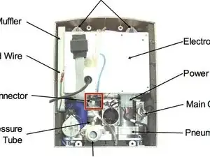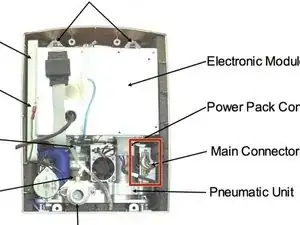 Отсоедините прозрачный разъём ниже большого белого электронного модуля.