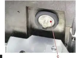 Найдите фильтр датчика давления вдоха, обозначенный на изображении буквой C.
