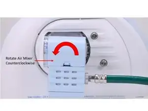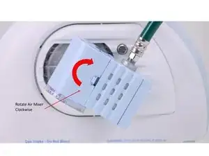 Установите микшер воздуха O2, отрегулировав фланцы в правильное положение. Затем поверните микшер воздуха по часовой стрелке, чтобы зафиксировать его на месте.