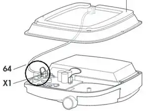 Подсоедините разъём (X1) к главной печатной плате. При этом выступ разъёма должен быть направлен в сторону защёлки. (стр. 24)