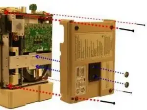 Снимите крышку отсека батареи, отвинтив (4) винта 6-32 X 5/16.