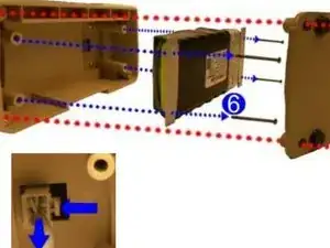 Соберите батарею: соедините её кабель с разъёмом (потяните за кабель, чтобы убедиться, что он зафиксирован), затем затяните (4) винта 6-32 X 2 ¼.