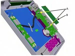 Если необходимо, снимите модуль ESM, отключив его от соединительных разъемов (A).