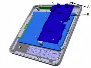 Удалите 4 винта (D), чтобы снять поворотное крепление панели (E).
