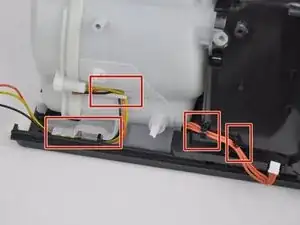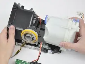 Аккуратно оттяните серебристый корпус от корпуса насоса, чтобы отсоединить два маленьких трубопровода.