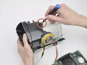 Отверните винт TR10 Torx длиной 14 мм (расположен выше выходного отверстия воздуха) в корпусе водяного резервуара.