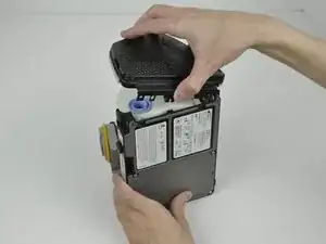 Держите чёрный пластиковый корпус устройства и сдвиньте корпус насоса в сторону от корпуса устройства.