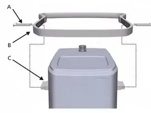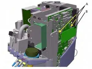 Убедитесь, что вы сняли 4 винта с шестигранным шлицем (A) с направляющей, окружающей вентиляционный блок.