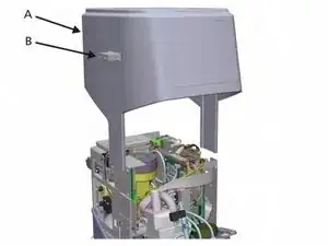 Поднимите основную крышку (A) с вентиляционного блока, используя кронштейны (B), прикрепленные к основной крышке.