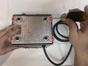 Удалите четыре винта крепления нагревательной поверхности 3 x 16 мм крестовой отвёрткой Phillips #2.