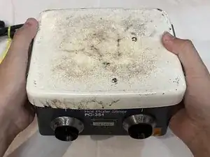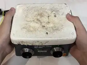 Используйте это руководство для замены, ремонта или очистки нагревательной поверхности лабораторной нагревательной плиты Corning PC-351. Нагревательная поверхность — это металлическая пластина, через которую нагревательная спираль передаёт тепло для нагрева любого предмета, помещённого на неё. Со временем эта пластина может деформироваться из‑за частого использования, вмятинами при ударах или загрязняться грязью и химикатами. В таком случае необходимо снять нагревательную пластину с устройства для её очистки или установки новой пластины, чтобы избежать неравномерного нагрева.