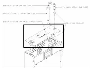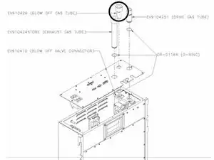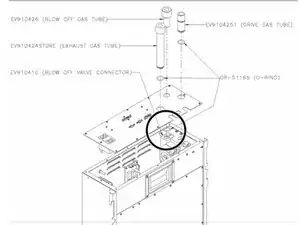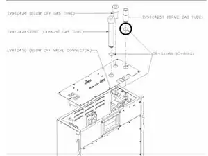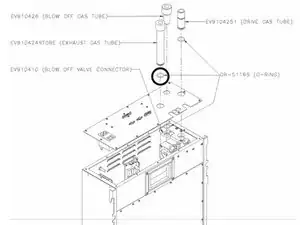Вытащите вытяжной газовый шланг (EV910424) и замените О-образное уплотнение в канавке на трубке, смазав его силиконовой смазкой.