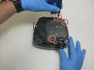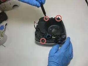 Удалите три винта длиной 26,7 мм, крепящие корпус мотора к нижней части, с помощью отвертки Torx T3.
