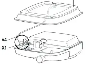 Подключите разъем (X1) к основной плате. При этом выступ разъема должен указывать на замок. (стр. 24)