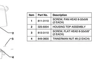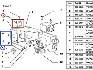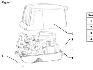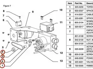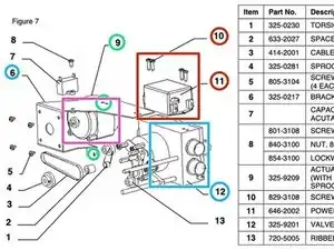 Снимите два пластмассовых винта длиной 12,7 мм сверху и один винт под приводным двигателем (9). (Страница 7)