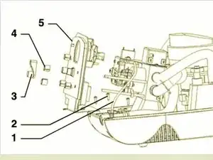 Передняя панель управления (5) теперь должна быть свободной. Аккуратно сдвиньте её вперёд, чтобы снять. (Страница 4).