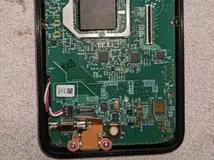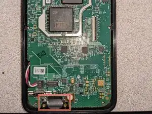Удалите 2 серебряных винта Torx T5, удерживающих разъем зарядки.