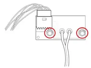 Используйте отвёртку, чтобы выкрутить два винта с конической головкой Phillips в верхней части защитного кожуха вилки.