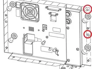 Удалите 2 винта с зенковкой Phillips с правой стороны задней панели.